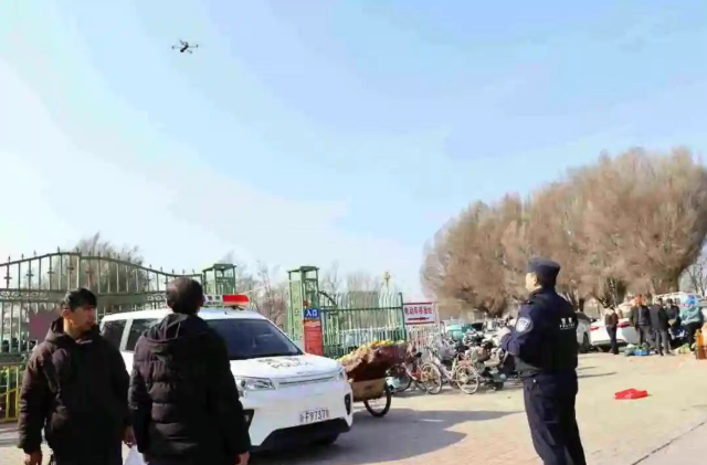 “这可真是头一回见!无人机在天上喊反诈,声音还挺亮堂。”一旁卖干果的张大爷竖起大拇指。以往巴扎上人多嘈杂,地面发传单、口头宣传的声音容易被淹没,不少宣传内容群众听几句便忽略了。此次无人机高空喊话覆盖面广,巴扎各个角落均能清晰收听,新颖的宣传形式迅速吸引过往群众驻足聆听、相互传诵,使反诈知识在潜移默化中入脑入心。