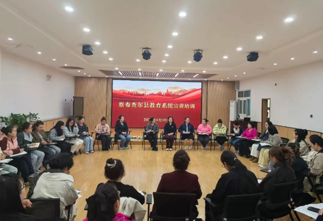 为进一步提升全县教育系统宣讲队伍专业素养,规范宣讲流程、创新宣讲形式,切实发挥宣讲工作在传递教育声音、凝聚育人共识中的重要作用,近日,察布查尔县教育局牵头召开2026年察布查尔县教育系统宣讲培训会。县教育局党委委员张红玲主持培训,全县各校34名宣讲员齐聚一堂、认真参训,县委宣传部副部长、县委讲师团团长富春丽带领4名县级优秀宣讲员代表莅临现场,为参训人员开展专业化、实操性宣讲能力提升培训。
