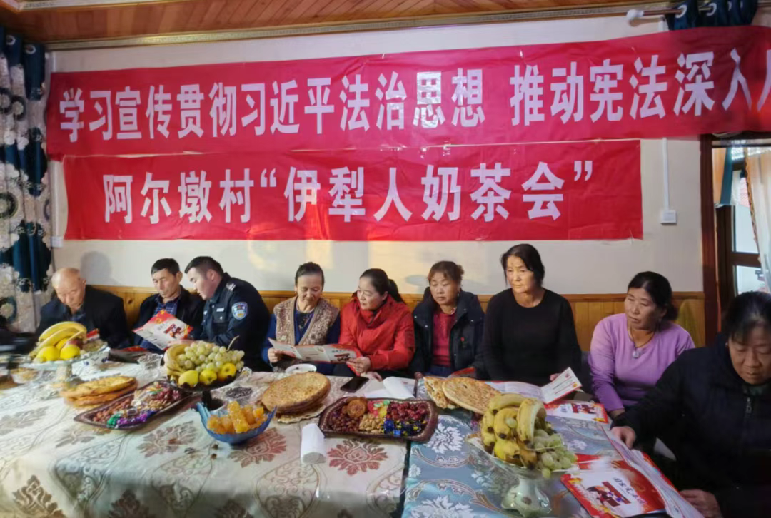 12月1日,察布查尔县阔洪奇乡阿尔墩村开展以“学习宣传贯彻习近平法治思想,推动宪法深入人心”为主题的“伊犁人的奶茶会”活动。这场洋溢着温情的聚会,借助奶茶这一媒介,以最贴近民生的形式,将宪法、习近平法治思想、惠民政策和民生服务直接传递到村民身边。