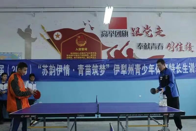 12月19日,第二届“苏韵伊情·青苗筑梦”伊犁州青少年体育特长生集训营走进察布查尔县,江苏省乒乓球队女队主教练王翔来到察布查尔县盐城实验学校,与当地青少年学生展开了一场别开生面的互动交流,将专业的乒乓球技艺与拼搏进取的体育精神播撒在孩子们心间。
