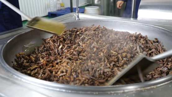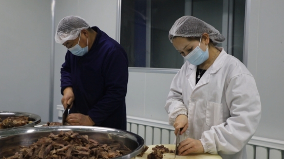 当日,记者走进新疆瑞顺泽食品有限公司生产车间,现代化的加工设备高速运转,着装整洁的工作人员,用娴熟的手法正在对牛肉进行切条、炒制、包装等工序,一道道严格的处理工序保证了牛肉的品质。
