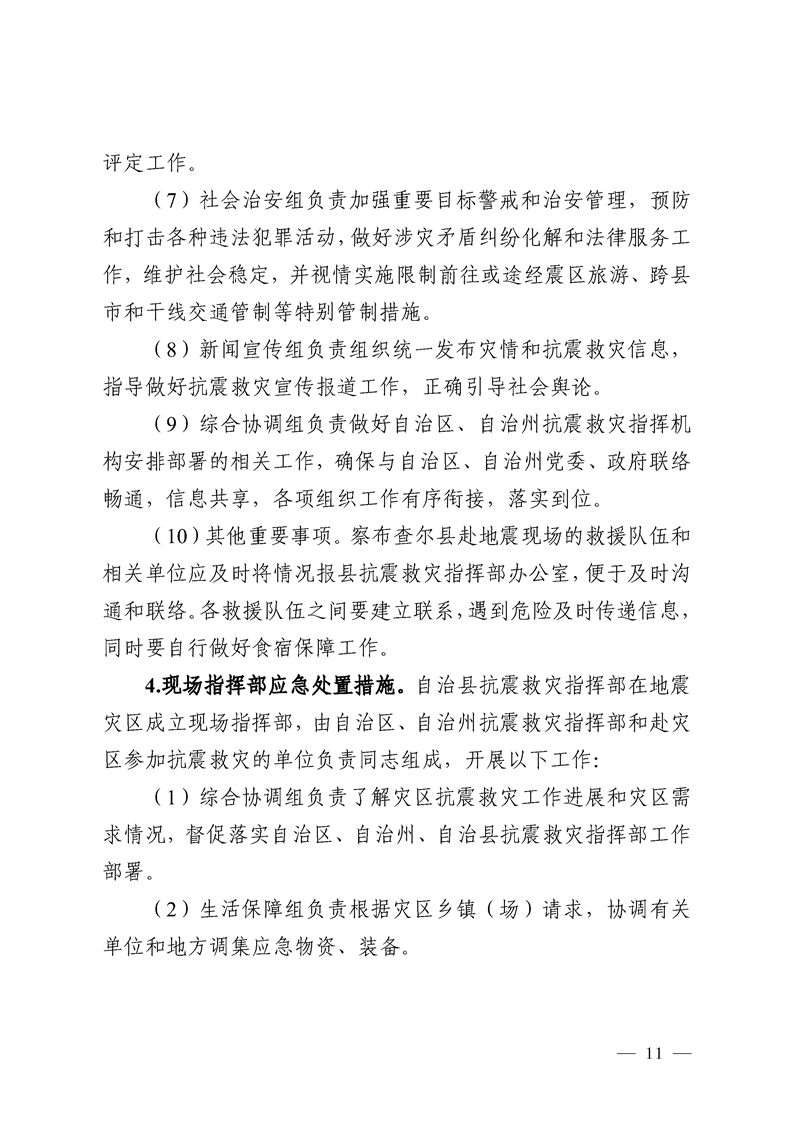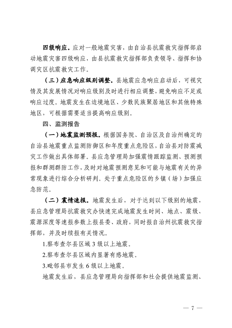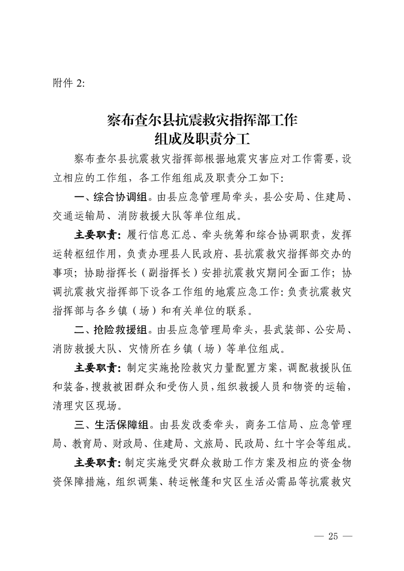 察布查尔县地震应急预案