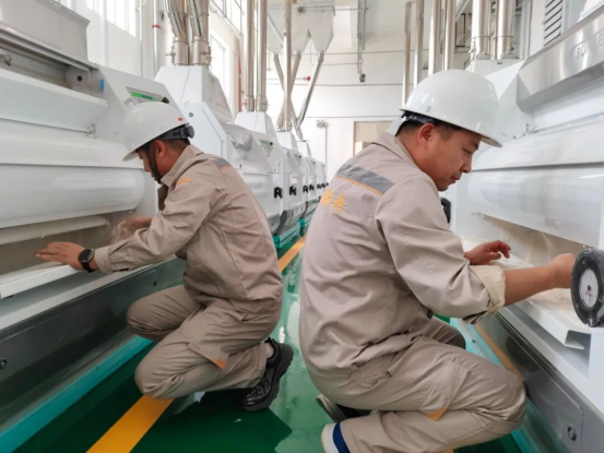 在生产车间另一侧,质检员正对出厂面粉进行颗粒度、水分、杂质等指标检测。企业始终把产品质量放在首位,严格执行国家食品安全标准,建立了从原粮入厂、生产加工到成品出库的全过程质量管控体系,确保每一袋面粉都安全、优质、可追溯。