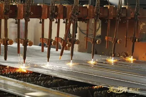 图为伊犁冀衡钢结构制造有限公司,激光切割机按照数字指令精准切割钢板。卢钟摄
