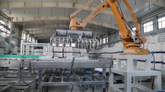 察布查尔县御麦康农业发展有限公司副总经理乔威说:“我们公司引进了瑞士布乐最先进的生产线,该生产线每日产能可达400吨。车间人员分为两班,共6人,在全产能状态下实行24小时不间断生产。”