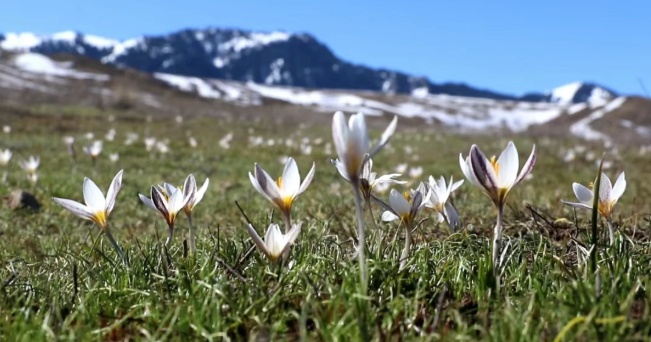 伊犁州中医医院驻郎喀村工作队队员胡文亮说:“今年白番红花大年初二就冒头,这几年禁牧,草场变好,花开得一年比一年早、一年比一年多。”