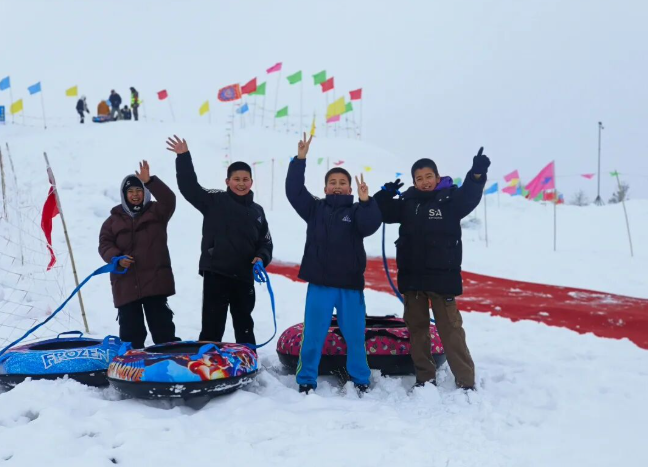 四川游客刘歆月兴奋地说:“想玩雪很久了,今天如愿以偿,雪地摩托、越野车、挖掘机拉雪圈项目都玩了,特别刺激,不同位置体验感也不同。”