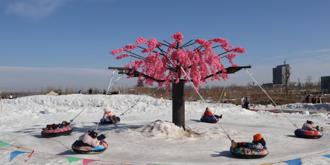 冰雪嘉年华欢乐多升级体验引客聚。在塞锡湖冰雪嘉年华,冰面和雪堆化作欢乐大舞台。游客骑着雪地摩托飞驰,雪地卡丁车、雪圈滑道等25项创意项目精彩不断。挖掘机拉雪圈处,游客坐在雪圈里随挖掘机旋转欢呼,尽享冬日乐趣。
