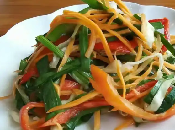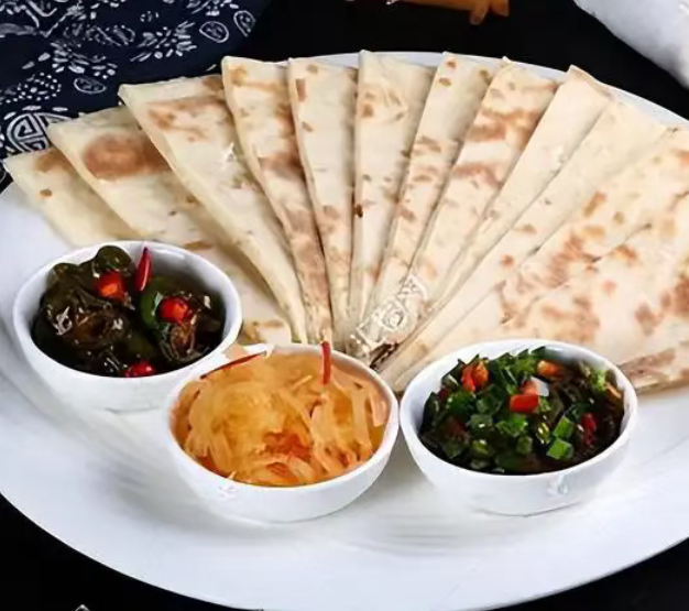花花菜 是锡伯族餐桌上的经典配菜,由胡萝卜、芹菜、韭菜、包菜、辣椒等多种时令蔬菜混合腌制而成。其色泽鲜亮,口感辛香开胃,富含膳食纤维与维生素,与锡伯大饼搭配食用,既健康又解腻。