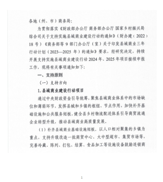 关于开展2025年(第二轮)县域商业建设行动项目申报工作的通知