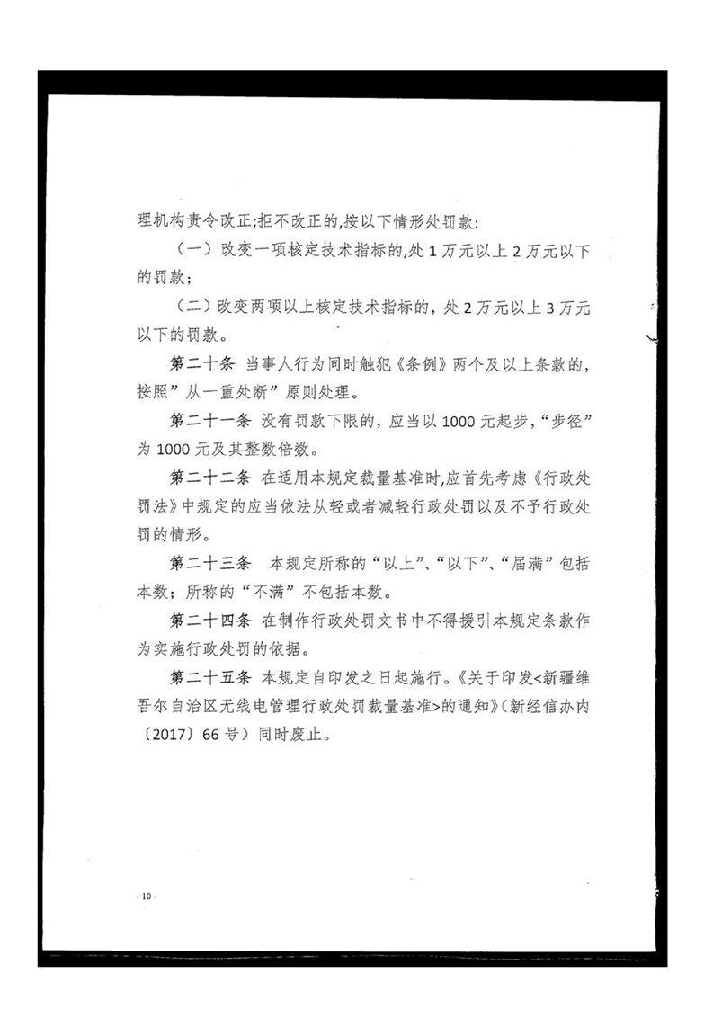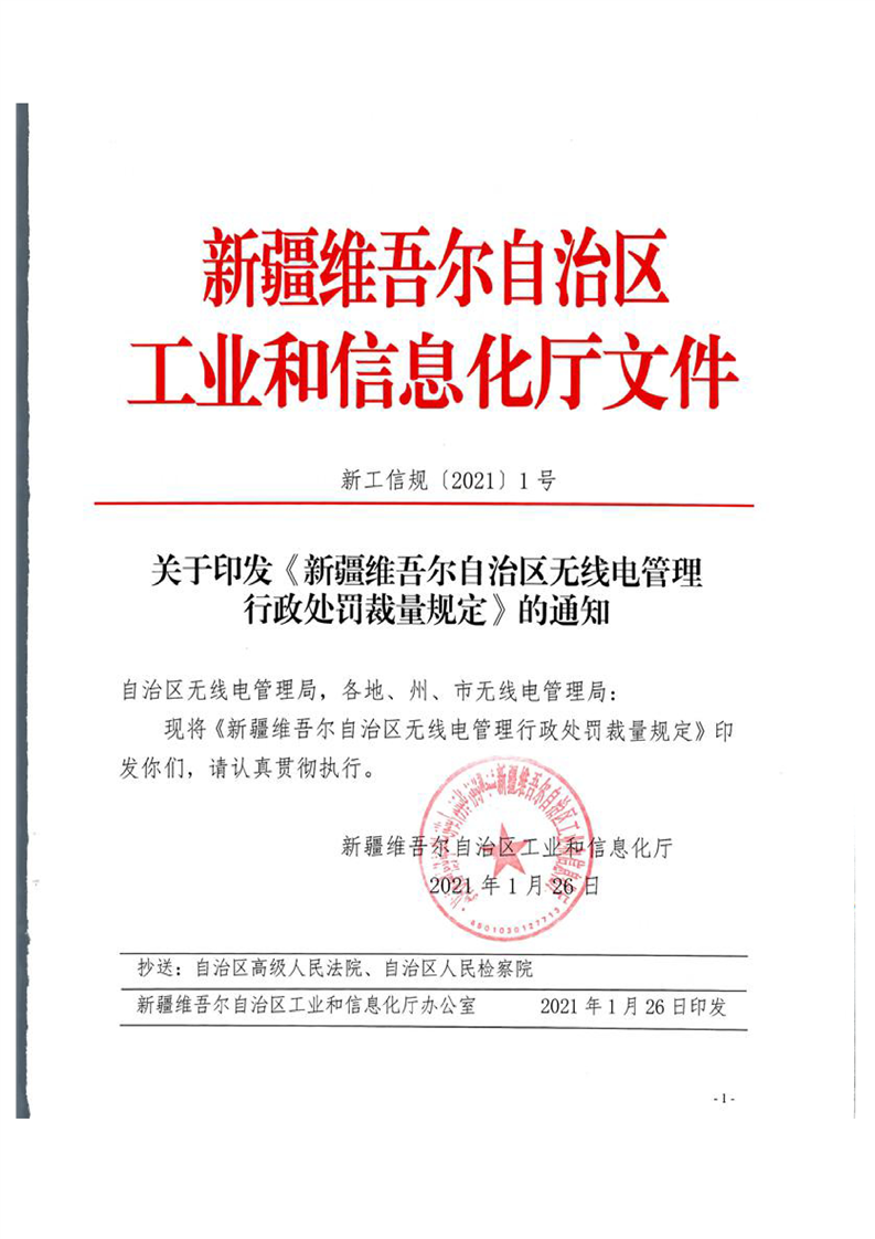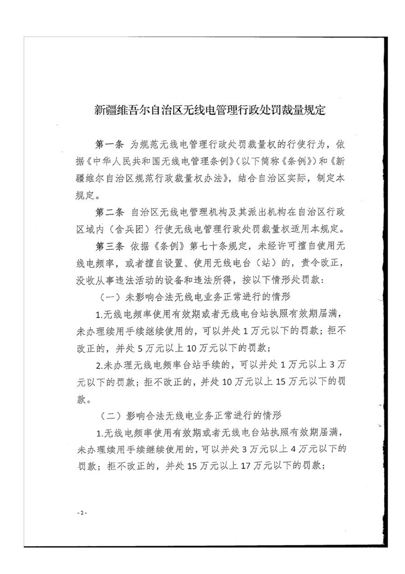关于印发《新疆维吾尔自治区无线电管理行政处罚裁量规定》的通知