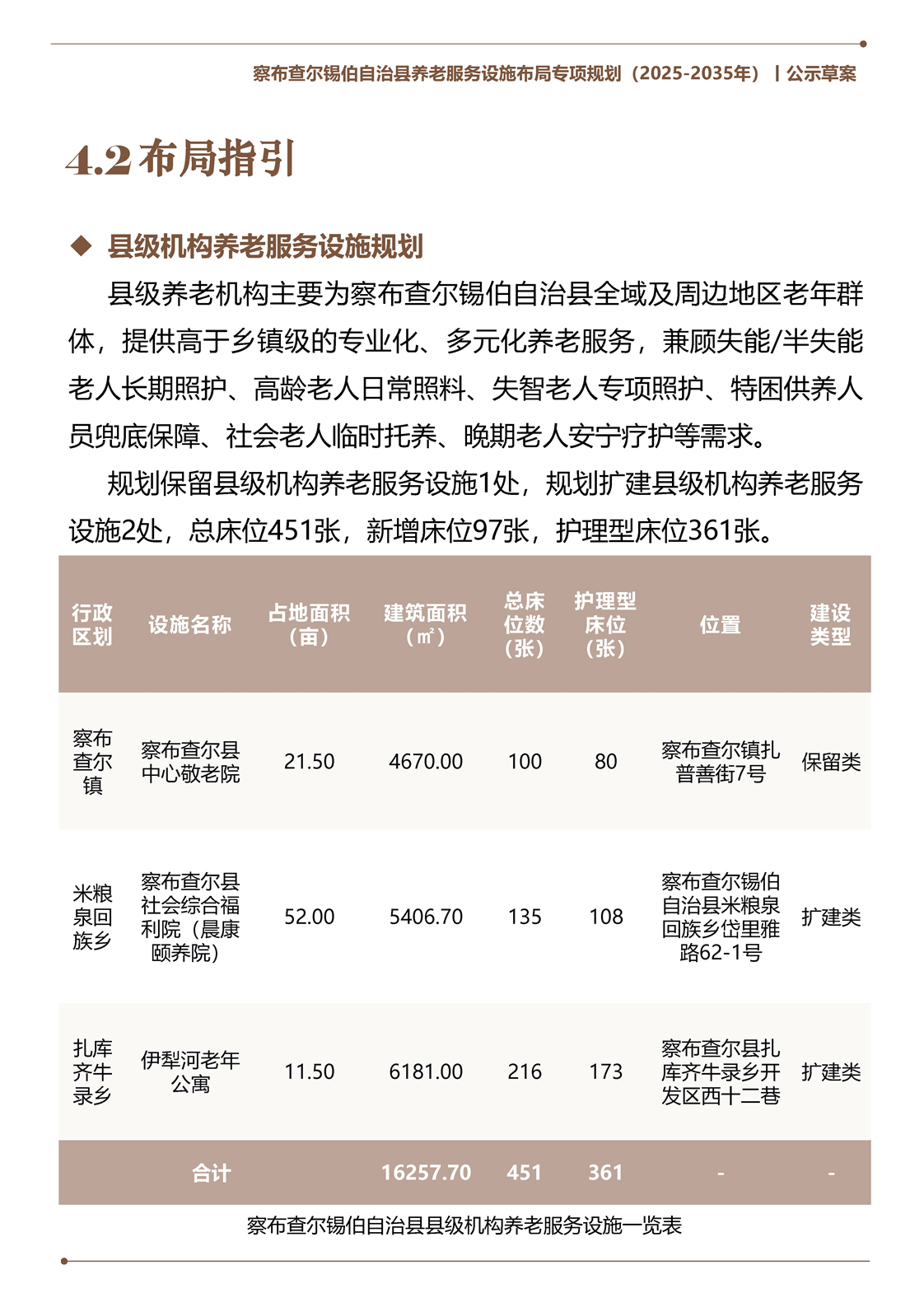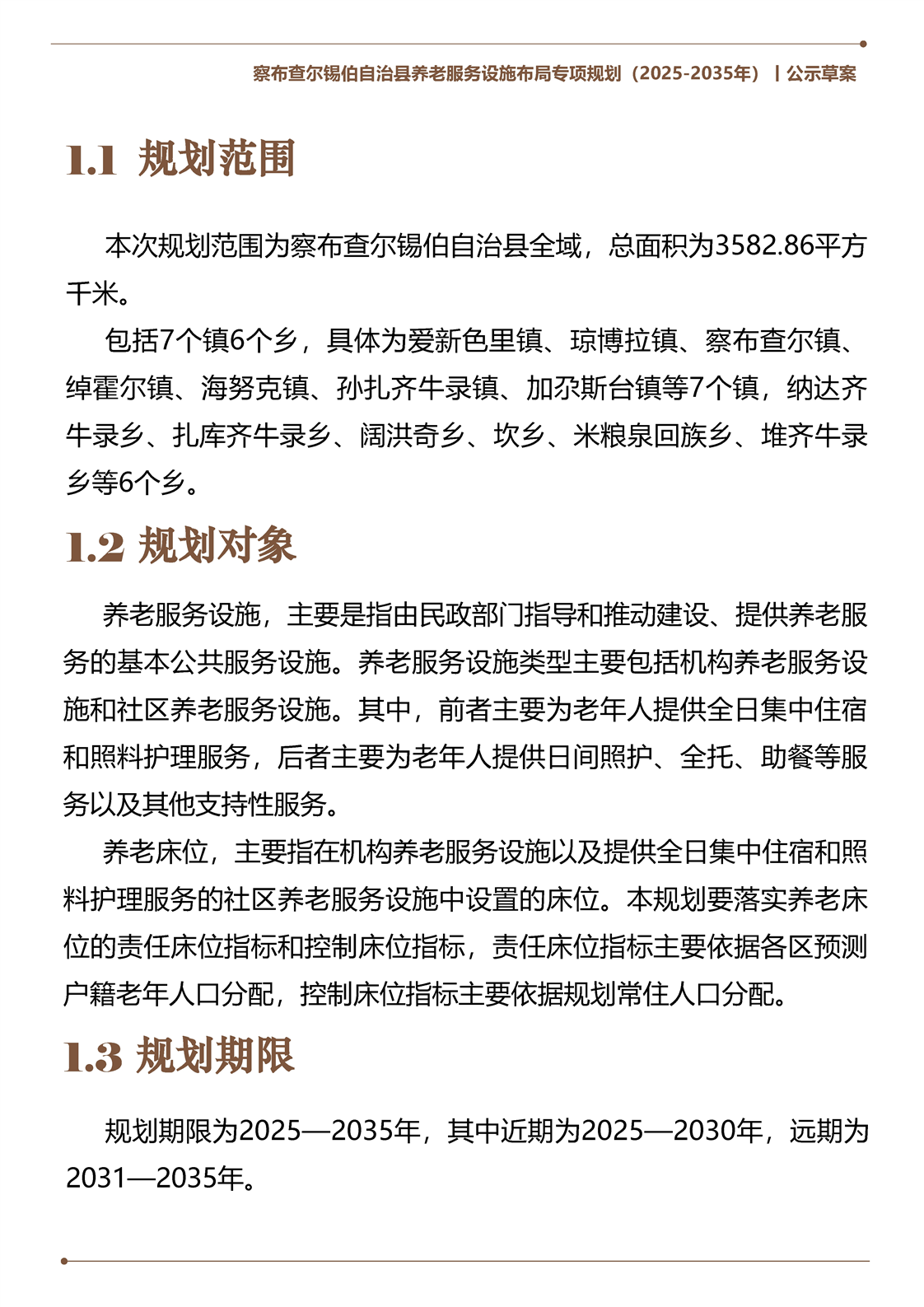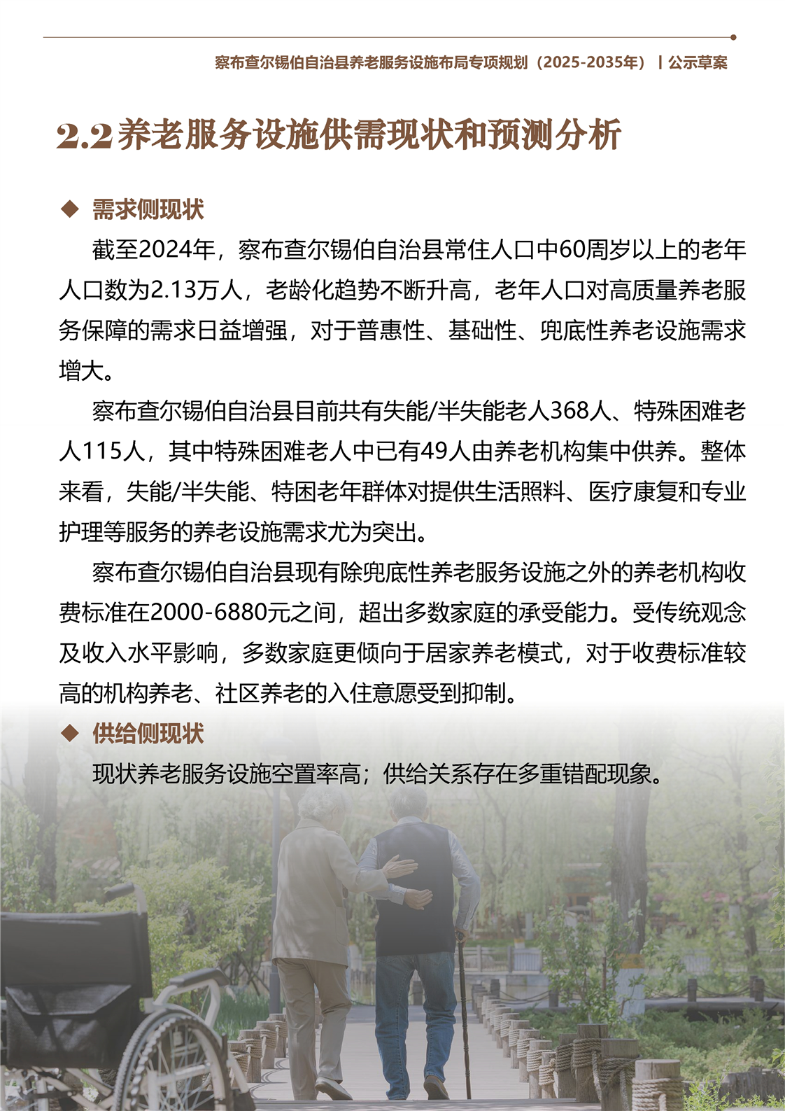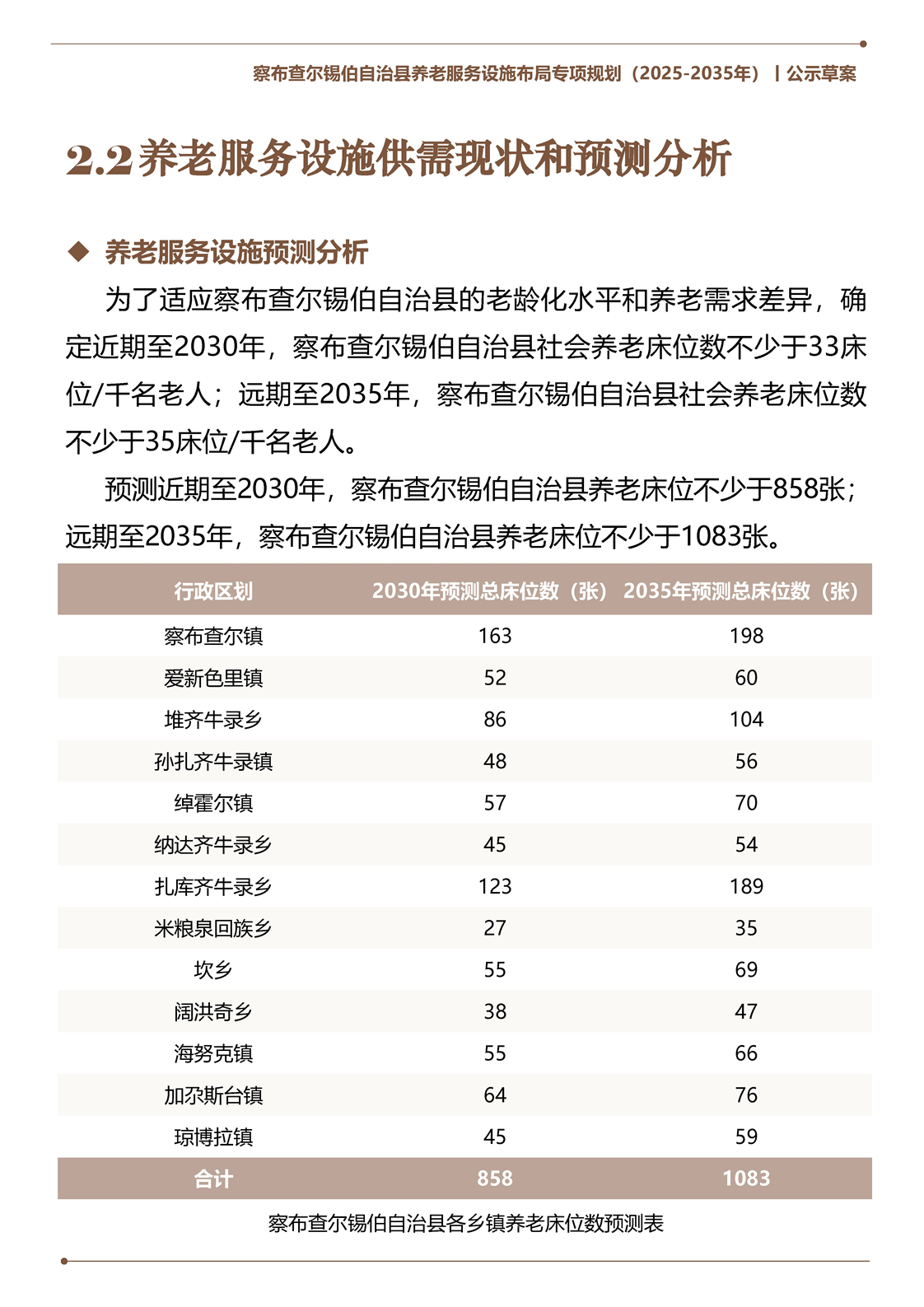 察布查尔锡伯自治县养老服务设施布局专项规划(2025—2035年)公示草案