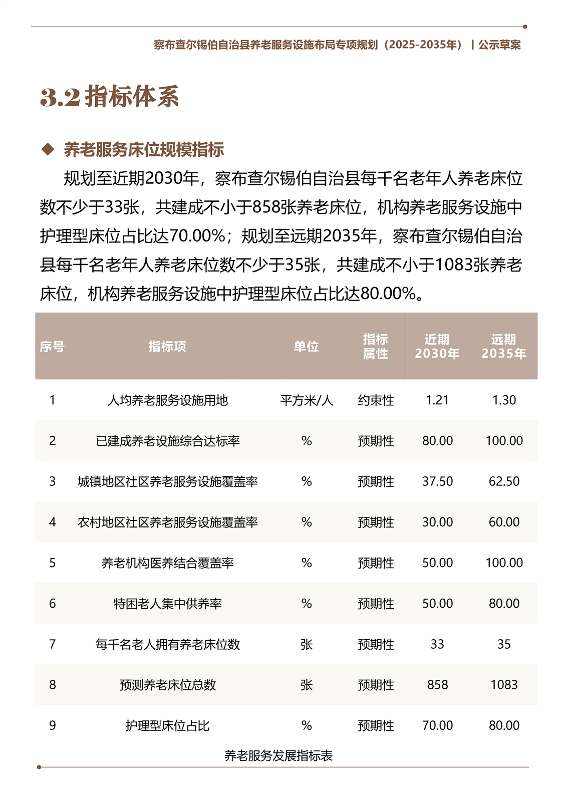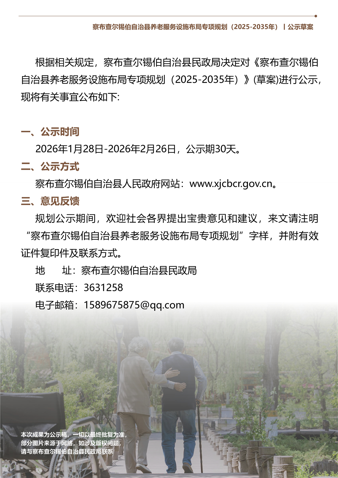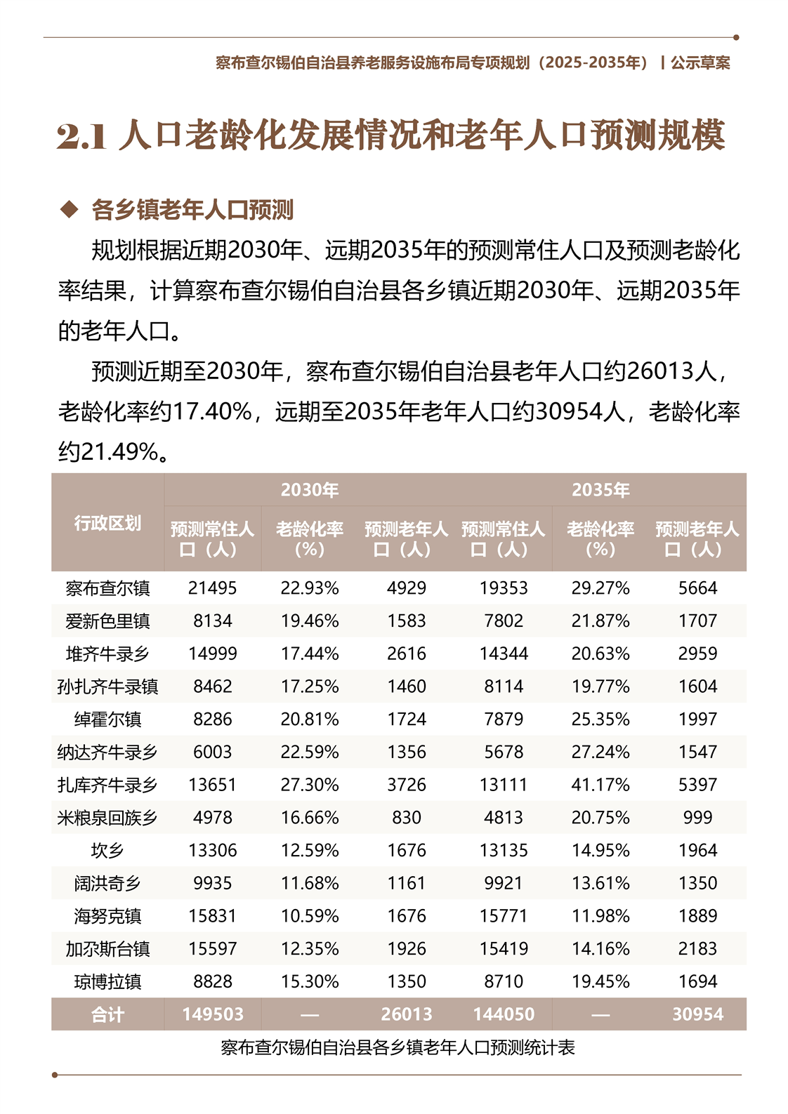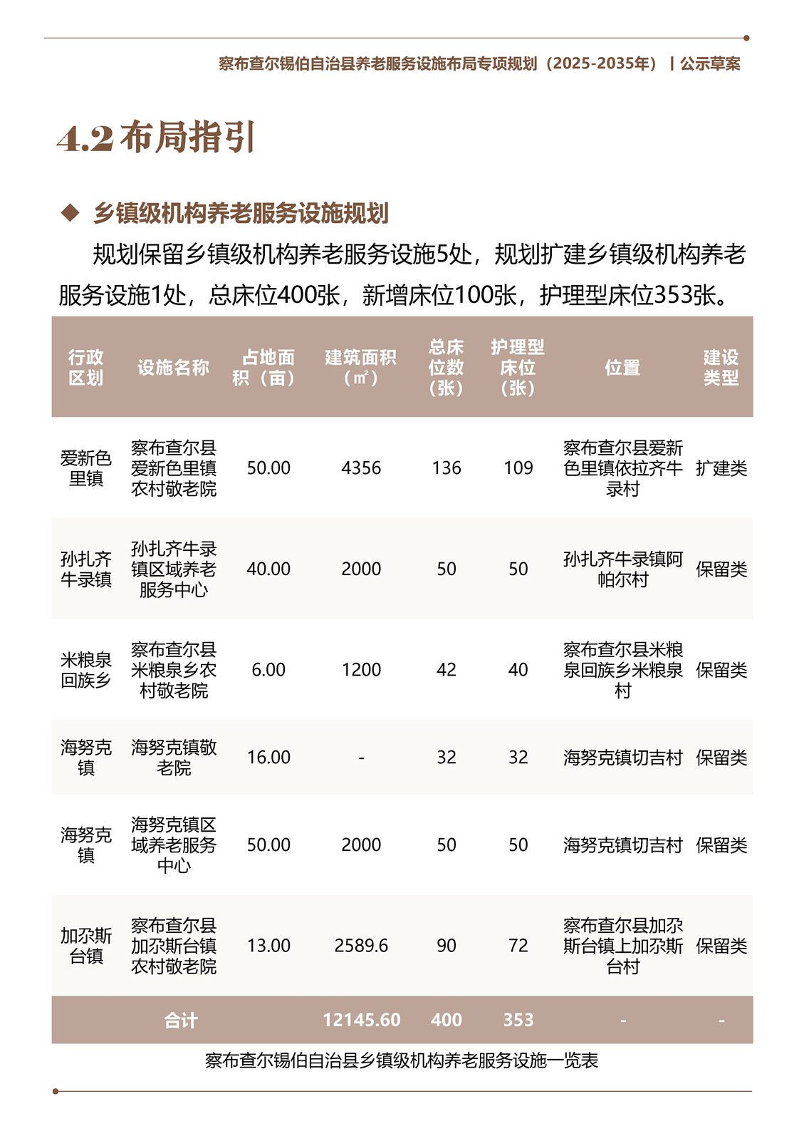 察布查尔锡伯自治县养老服务设施布局专项规划(2025—2035年)公示草案