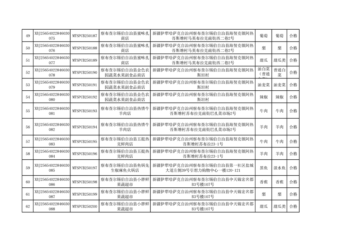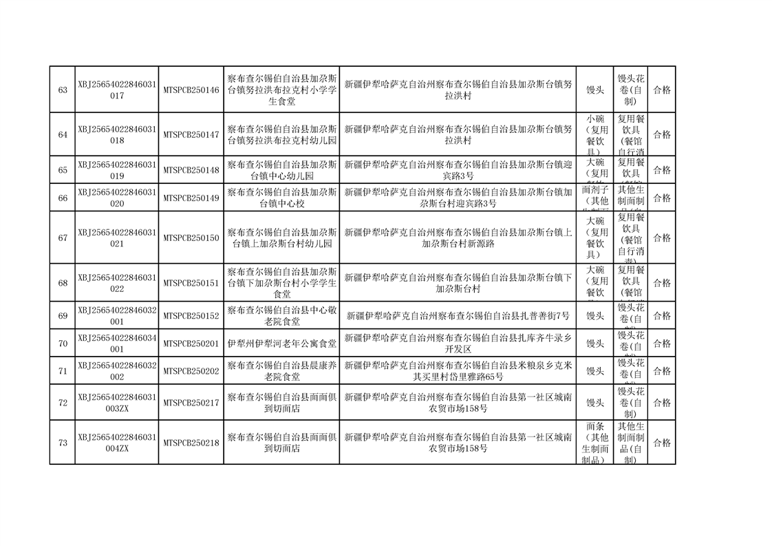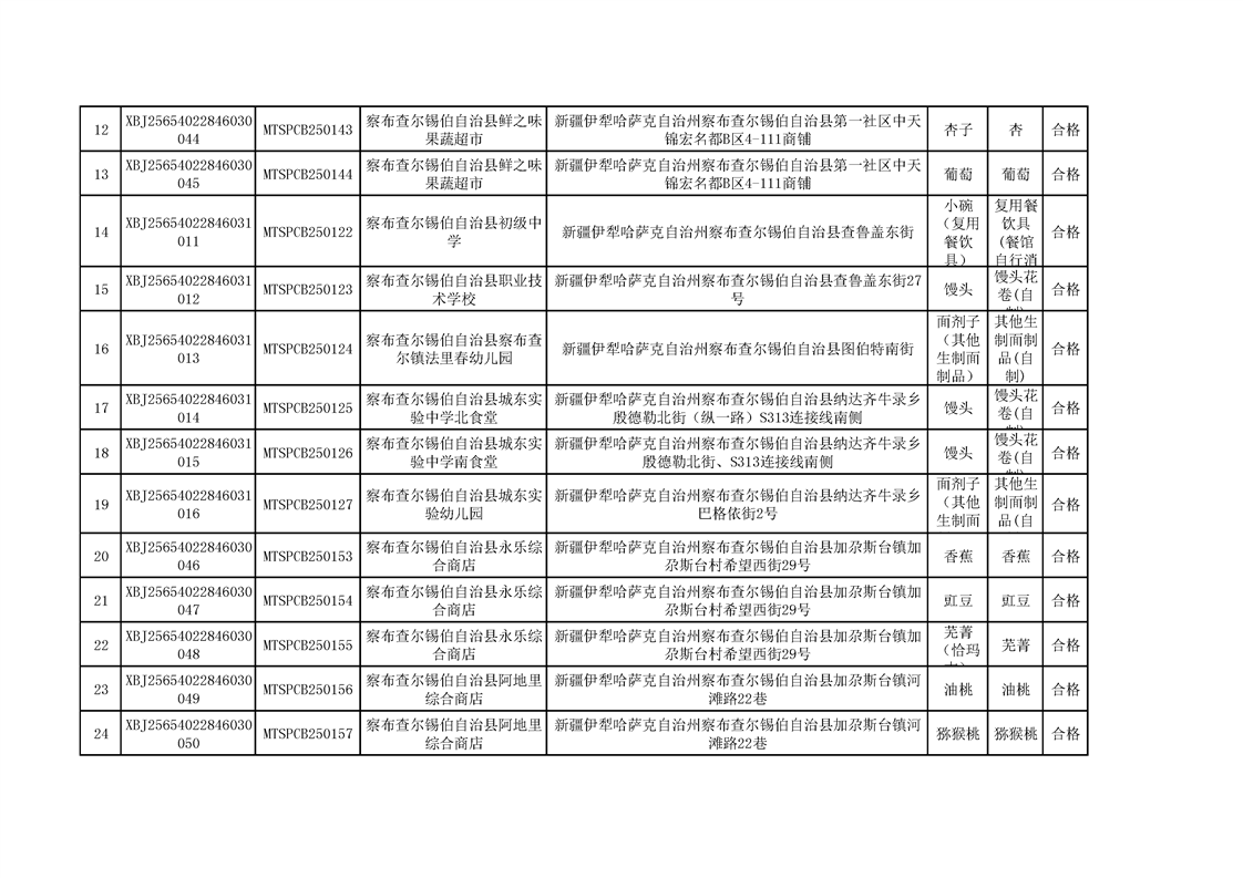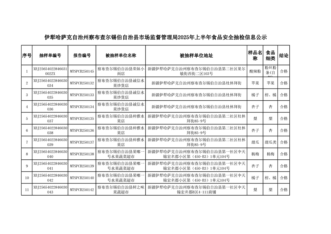 伊犁哈萨克自治州察布查尔锡伯自治县市场监督管理局2025年上半年食品安全抽检信息公示