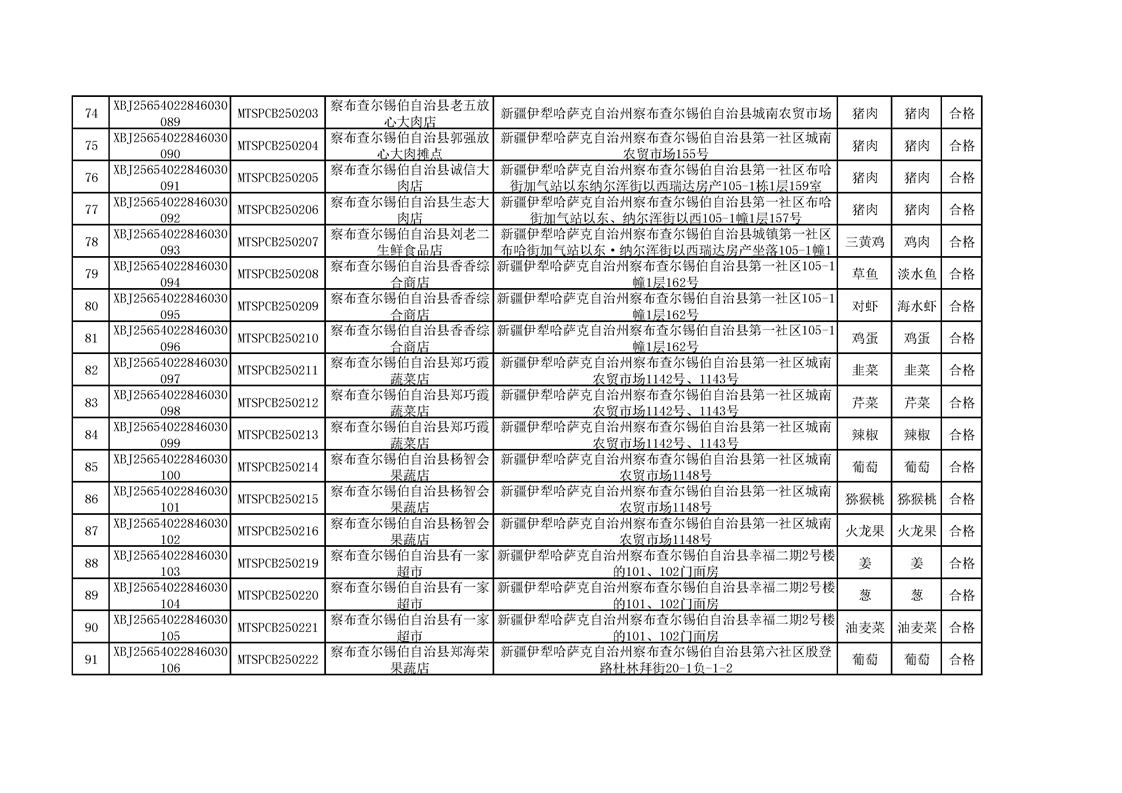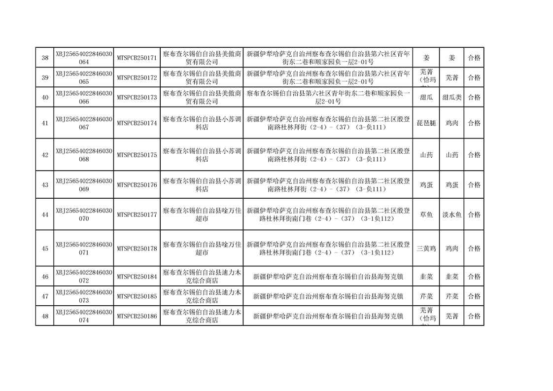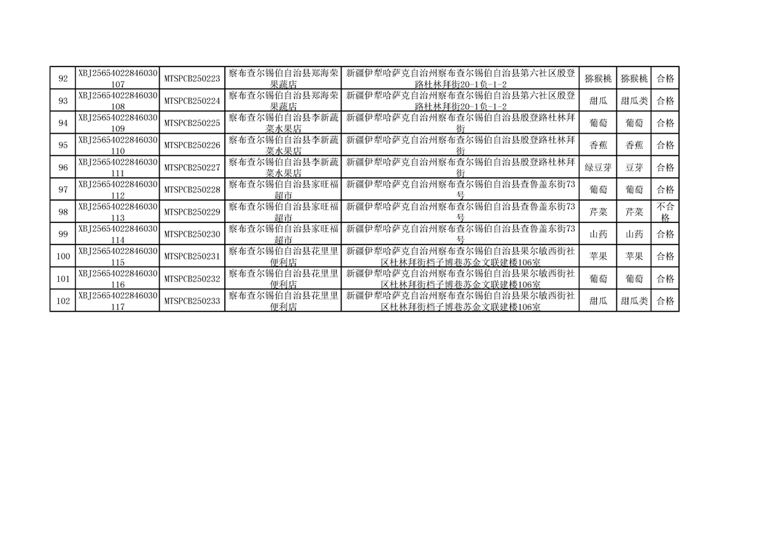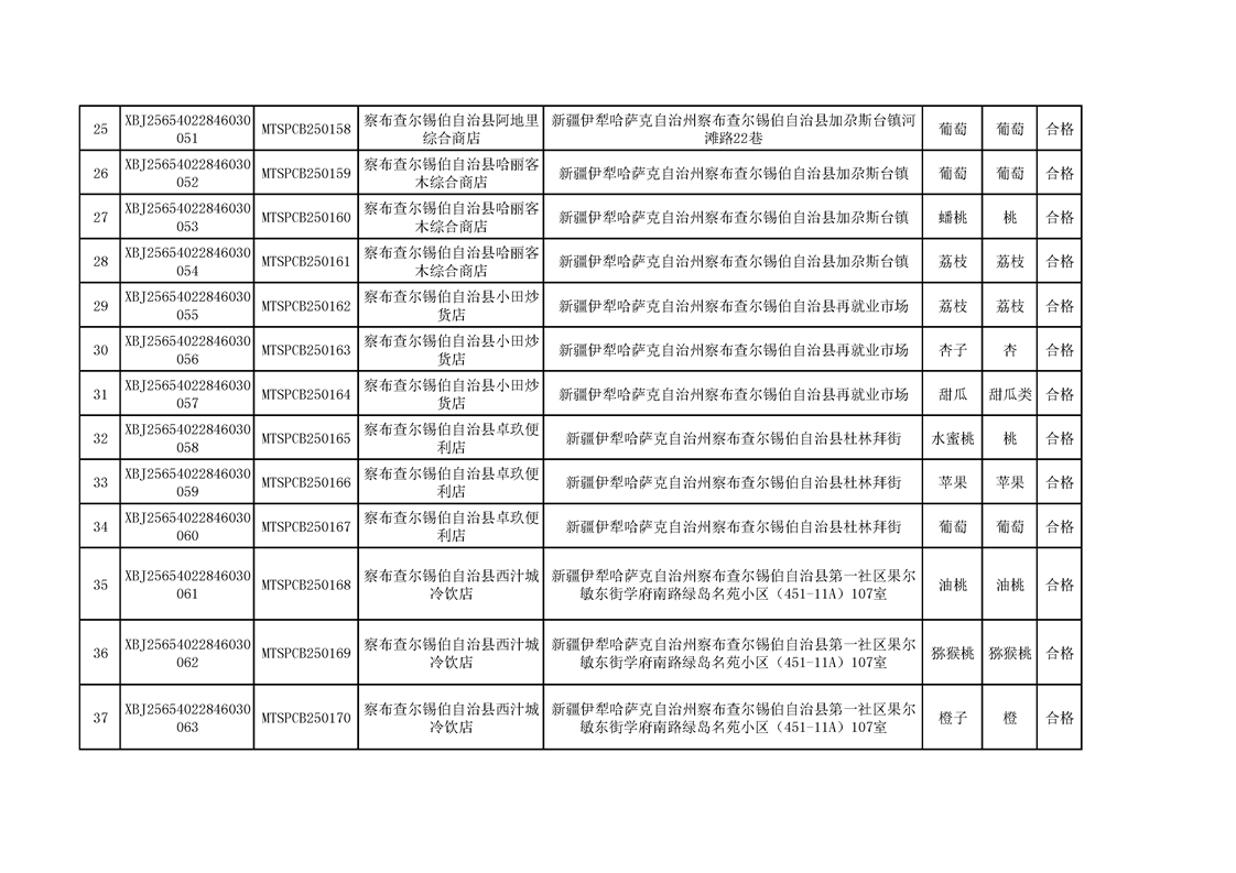 伊犁哈萨克自治州察布查尔锡伯自治县市场监督管理局2025年上半年食品安全抽检信息公示