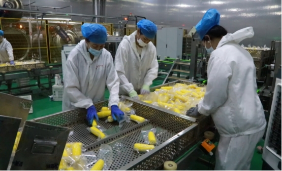 8月5日,在伊犁天一农业有限公司的鲜食玉米加工车间,自动化生产线高速运转。刚刚采摘的新鲜玉米,经过脱皮、切头去尾、清洗消毒、高温杀菌、蒸煮等程序后“华丽变身”,成为致富的“金棒棒”。从原料挑选、清洗、蒸煮到包装,整个流程最大限度地保留了糯玉米的营养成分,每个环节都严把质量关,确保让人们吃上安全、放心的糯玉米。