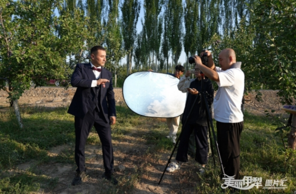 依拉木·亚尔买买提作为察布查尔县电子商务有限公司“小伊助农”的主播,这两年带领团队积极用镜头记录乡土风情,以直播搭建助农桥梁。随着一个个“馕言文”短视频的走红、“西装革履站农田”的反差感出圈,不断有农户和客商找“小伊助农”团队拍摄农产品,让察布查尔特色果蔬借“云端”出疆。