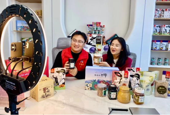 伊宁市北京路街道和谐亿达社区依托辖区优质电商资源,采取“党建+电商”助农模式,通过线上直播推广新疆察布查尔有机血米、血米香茶等特色农产品。