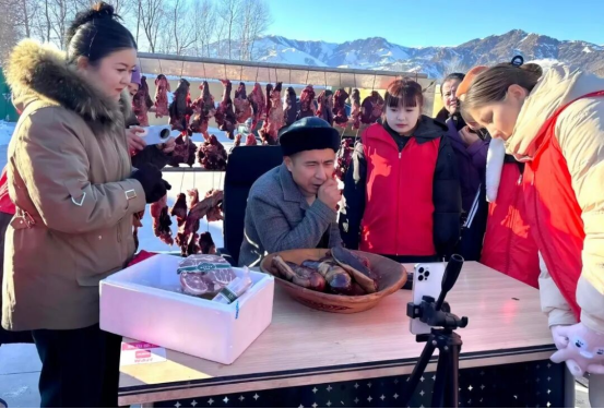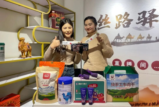 昭苏县察汗乌苏蒙古族乡霍图格尔村依托村级阵地打造电商直播间,党员干部化身带货主播,通过直播平台将本地奶酪、马肉、马肠子等特色农产品销往疆内外。