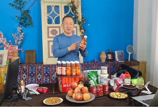 特克斯县乔拉克铁热克镇阿克铁热克村立足本地农产品资源优势,依托县电商公共服务中心,组织党员干部和返乡大学生化身助农主播,推介天山蜜源系列蜂蜜、苹果干、红花马肠、西梅等特色农产品。