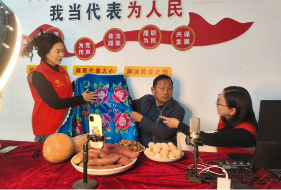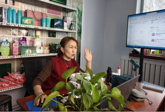 巩留县东买里镇琼艾依拉村聚焦本村农产品销售难题,在村委会活动室打造电商直播间,组织工作队员、村干部、志愿者化身助农主播,帮助农户推介农产品。