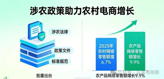 政策:《中共中央一号文件》《关于开展数字乡村强农惠农富农专项行动的通知》《2025年家政兴农行动工作方案》《关于加强金融服务农村改革推进乡村全面振兴的意见》《人工智能生成合成内容标识办法》《关于进一步强化食品安全全链条监管的意见》《2025年数字乡村发展工作要点》《促进农产品消费实施方案》《食品添加剂生产许可审查细则(2025版)》《互联网平台价格行为规则》《关于提升网络交易平台产品和服务质量的指导意见》《农副产品买卖合同(示范文本)》《关于深入实施“人工智能+”行动的意见》《食品委托生产监督管理办法》《关于加强商务和金融协同 更大力度提振消费的通知》《关于增强消费品供需适配性进一步促进消费的实施方案》等;
