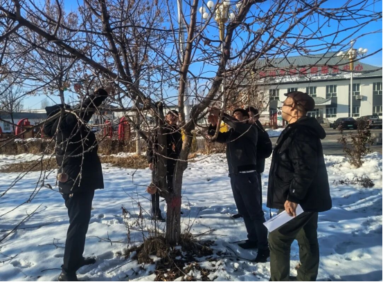 理论教学环节,重点讲解冬季果树修剪原则、土壤改良与科学施肥技巧、病虫害绿色防控策略及防寒抗冻措施,针对不同树龄的差异化修剪、徒长枝处理等核心内容,用“先修后剪树好管,无用枝条全年剪”等通俗顺口溜辅助记忆。现场发放宣传单60余份。