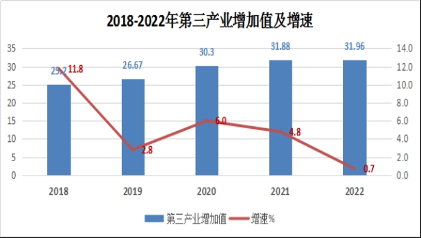 全年批发和零售业增加值14141万元,比上年下降19.3%;交通运输、仓储和邮政业增加值6256万元,比上年增长2.0%;住宿和餐饮业增加值4216万元,比上年下降7.9%;金融业增加值33288万元,增长7.5%;其他服务业增加值231402万元(非营利性服务业196472万元,其他营利性服务业34930万元),增长0.7%。全年规模以上其他服务业企业实现营业收入2910万元,比上年下降62.3%。