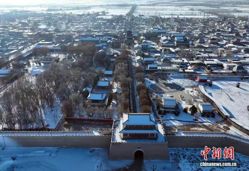 1月10日,航拍锡伯古城全景。锡伯古城位于新疆伊犁察布查尔县境内孙扎齐牛录镇,是面向全国及中亚打造的集特色城镇化基地、传统历史文化名胜浏览、主题游乐、休闲度假功能于一体的综合性旅游目的地。古城总体布局坚持文化铸魂、城建塑形、旅游扬名,体现多元一体理念,是各民族休戚与共、团结发展的历史见证。锡伯古城的建成,为人们更深入了解锡伯族、了解察布查尔打开了一扇门。游客可以在古镇全方位了解锡伯族的历史文化、西迁壮举、民俗风情等,可以体验锡伯族传统的饮食、服饰、刺绣、弓箭、舞蹈等多元民族习俗。 锡伯族作为古代鲜卑族的后裔,历史悠久,至今保存着很多珍贵的文化遗产,在长期的新疆屯垦戍边中形成了其独特的文化,在保留原有锡伯族语言文字的基础上积极融合其他民族先进的文化,同时保留了许多民间故事、历史文物古迹,不同程度的反映了锡伯族在不同时期的社会生活风貌,有着深刻文化内涵。