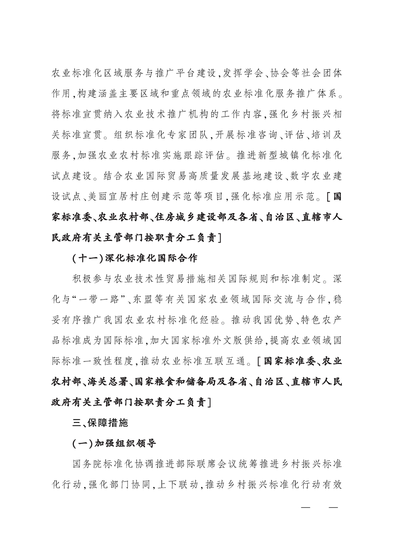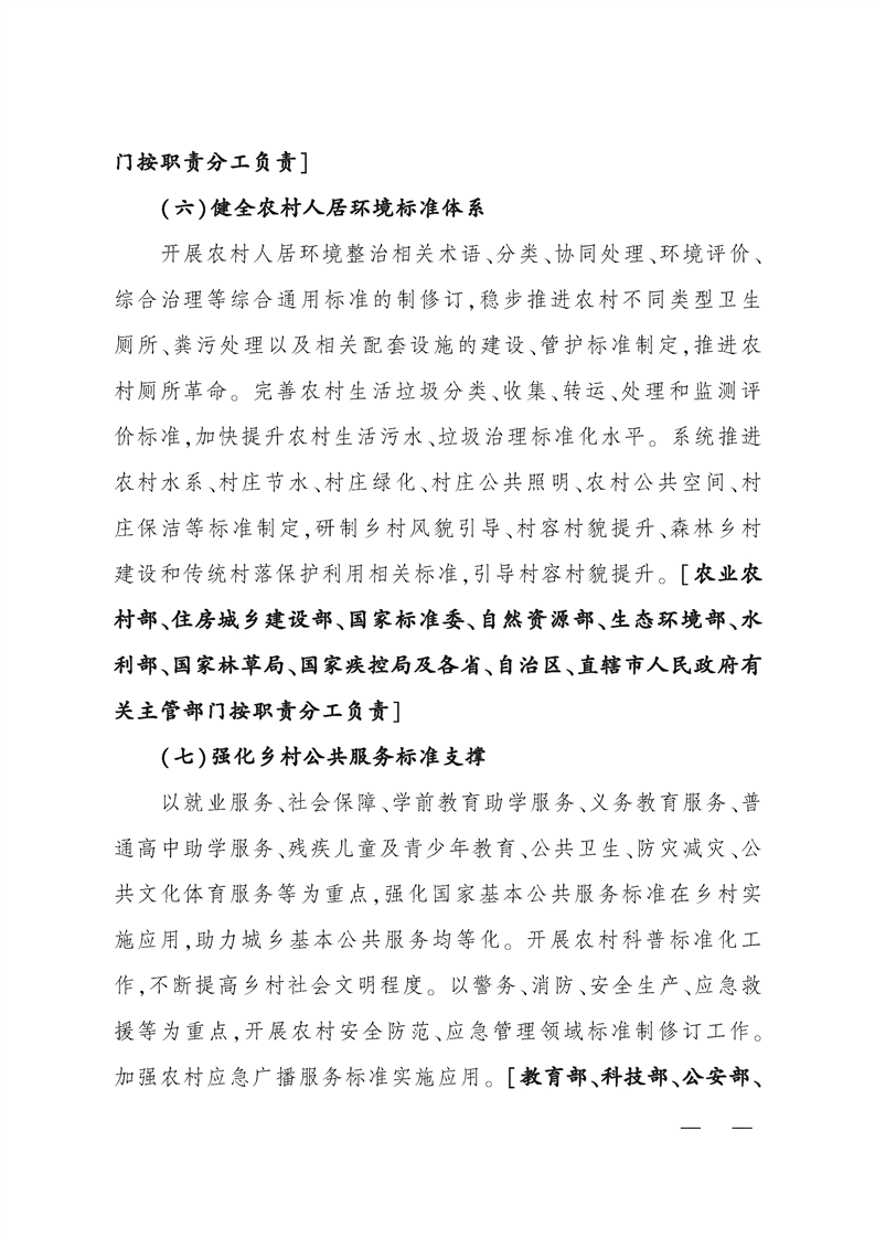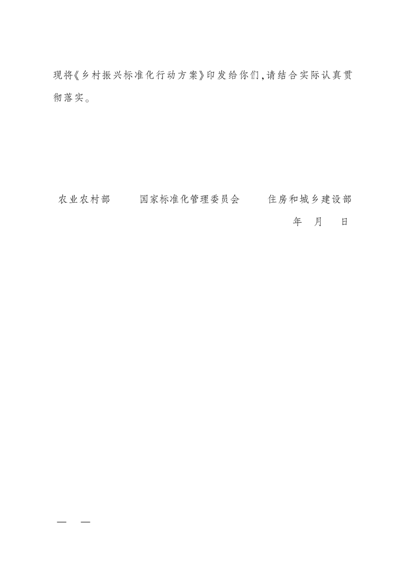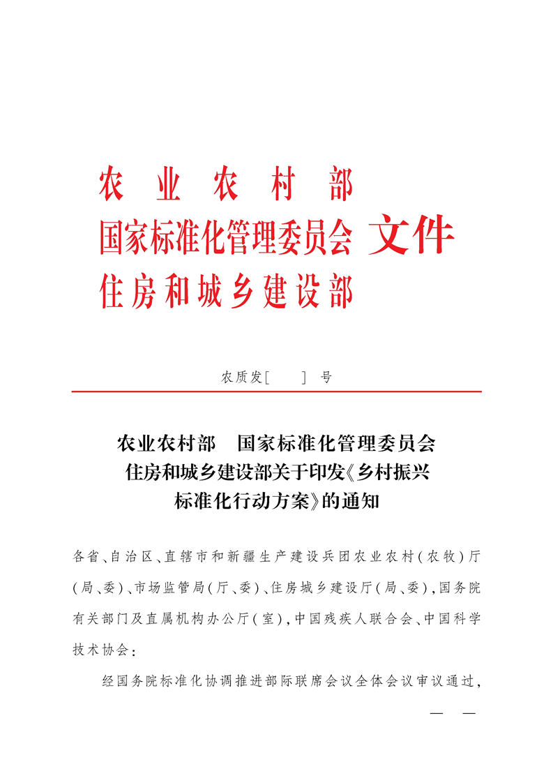农业农村部 国家标准化管理委员会住房和城乡建设部关于印发《乡村振兴标准化行动方案》的通知