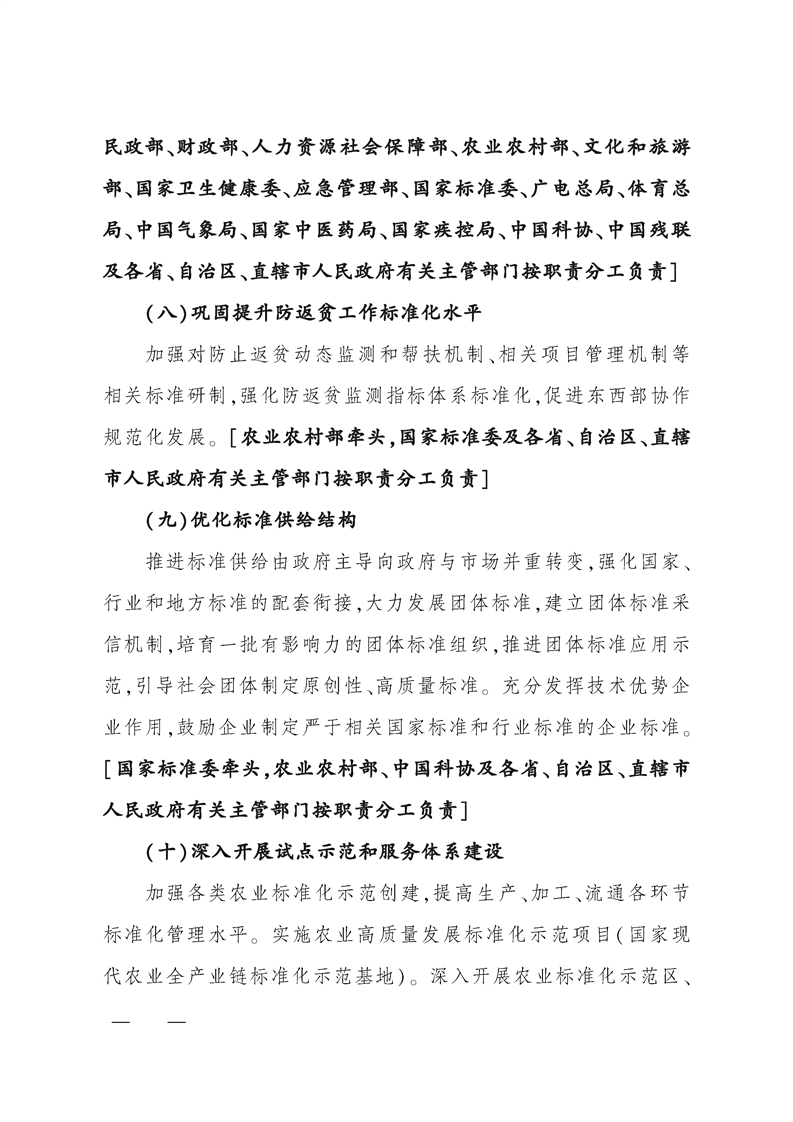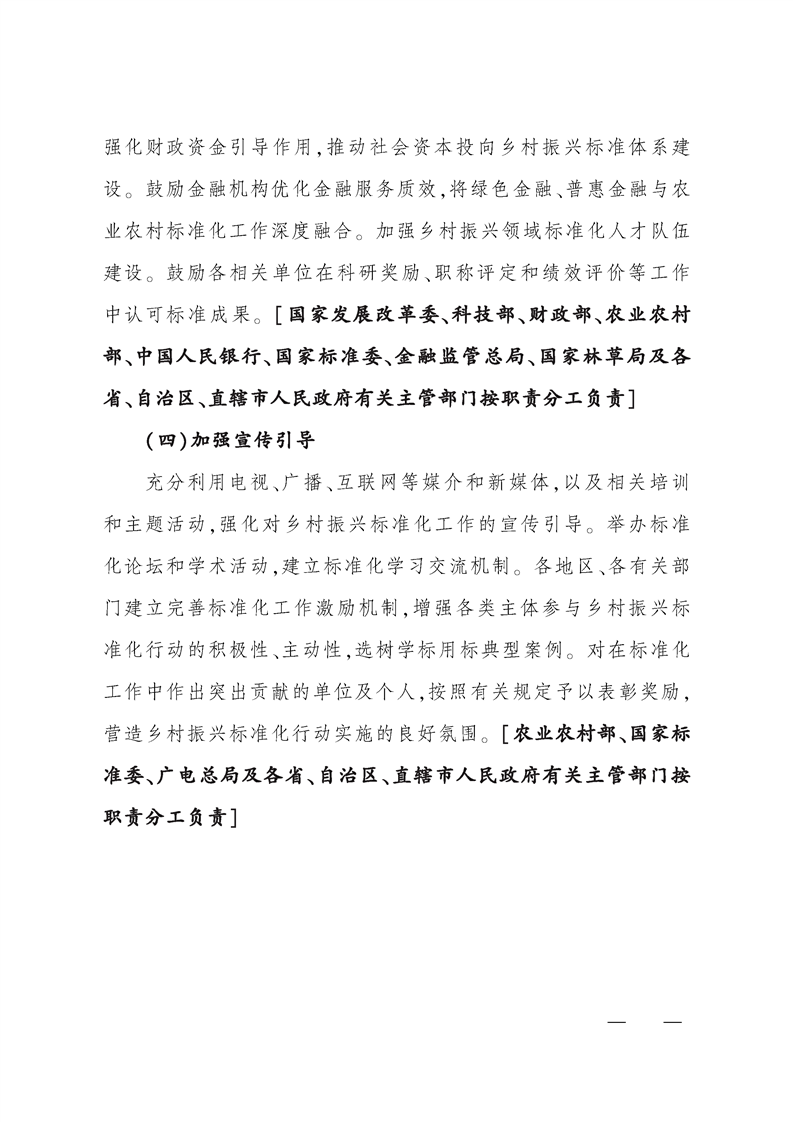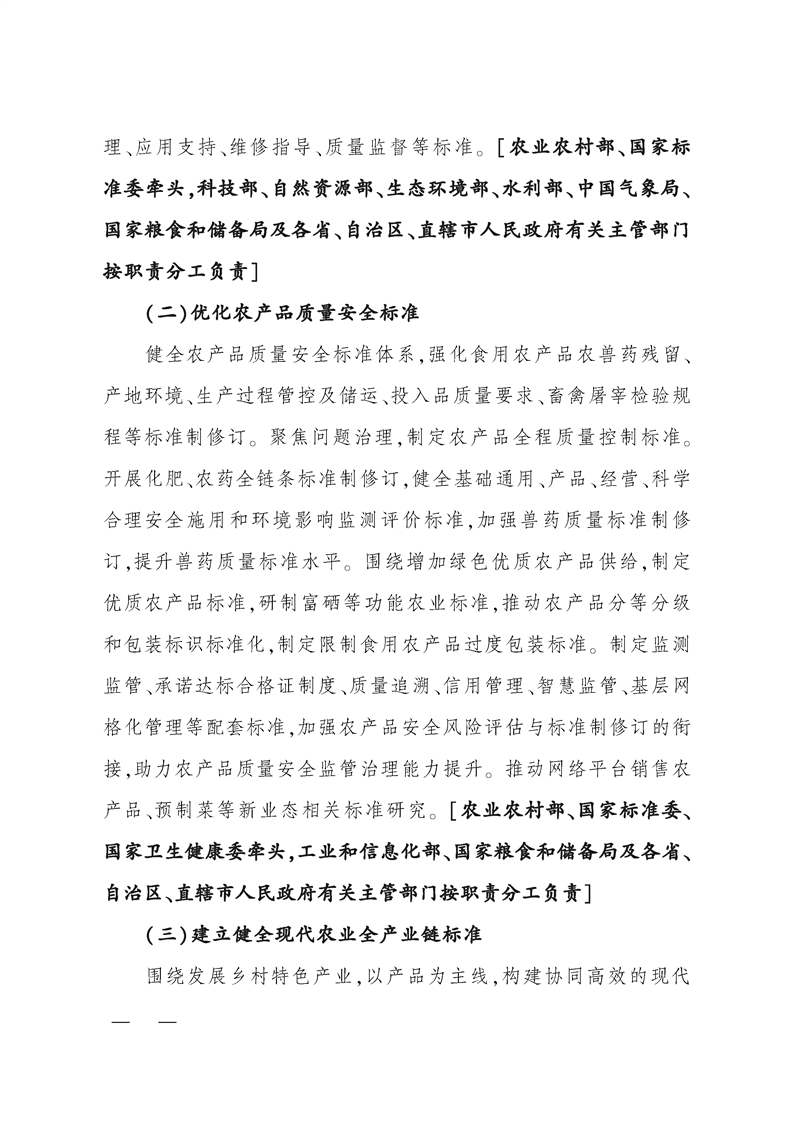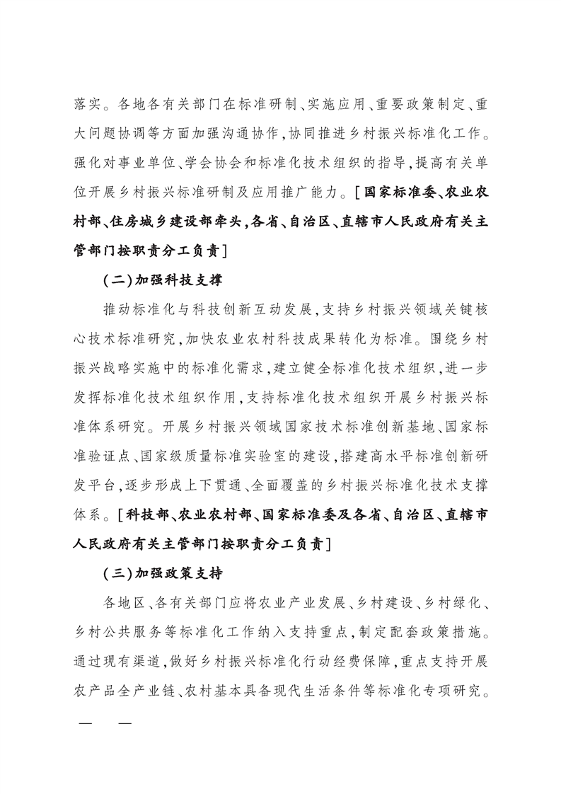 农业农村部 国家标准化管理委员会住房和城乡建设部关于印发《乡村振兴标准化行动方案》的通知